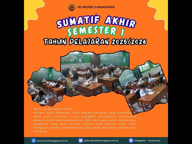 Kegiatan Sumatif Akhir Semester 1 Tahun Pelajaran 2025/2026 dilaksanakan serentak oleh satu pendidikan tingkat dasar, seperti halnya kegiatan tersebut dilaksanakan di SD Negeri 3 Mangaran dengan jumlah keseluruhan 130 Siswa/Siswi